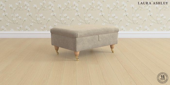 7.0.3 Buy Ambersham by Laura Ashley Storage Footstool Lundar Chenille Truffle Natural Low Brass Castor - Light Oak from the Laura Ashley online shop Click here to use our website with more accessibility support, for example screen readers