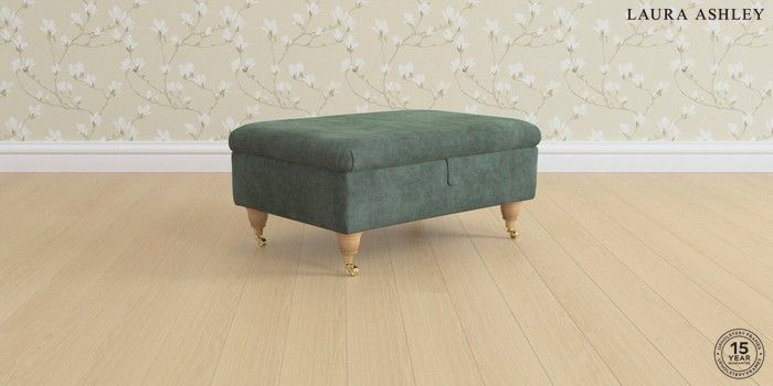 7.0.3 Buy Ambersham by Laura Ashley Storage Footstool Nantmor Fern Green Low Brass Castor - Light Oak from the Laura Ashley online shop Click here to use our website with more accessibility support, for example screen readers