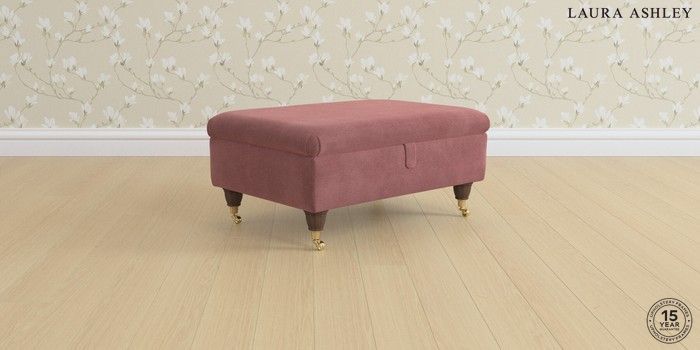 7.0.3 Buy Ambersham by Laura Ashley Storage Footstool Peyton Plum Purple Low Brass Castor - Chestnut from the Laura Ashley online shop Click here to use our website with more accessibility support, for example screen readers