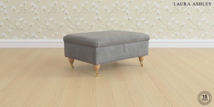 7.0.3 Buy Ambersham by Laura Ashley Storage Footstool Wooton Dark Steel Grey Low Brass Castor - Light Oak from the Laura Ashley online shop Click here to use our website with more accessibility support, for example screen readers