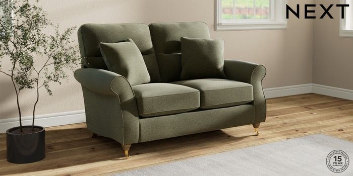 6.12.1 Buy Ashford Highback 2 Seater Small Sofa Ripple Chenille Mid Moss Green Castor - Light from the Laura Ashley online shop Click here to use our website with more accessibility support, for example screen readers