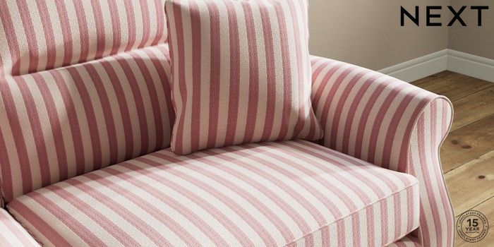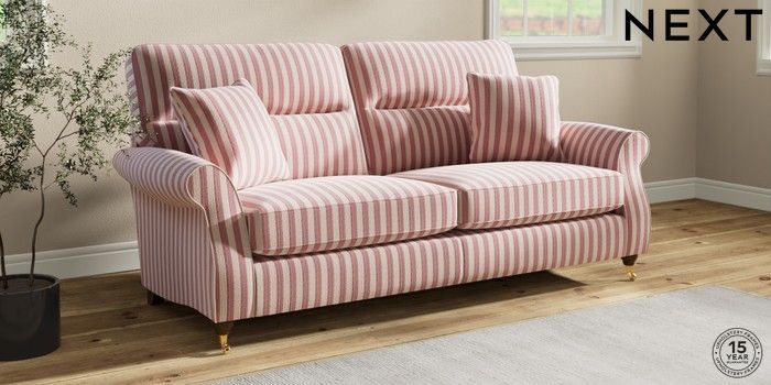7.3.1 Buy Ashford Highback 3 Seater Sofa Bold Chenille Stripe Dark Pink Castor - Mid from the Laura Ashley online shop