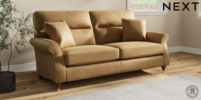 6.12.1 Buy Ashford Highback 3 Seater Sofa Luxe Chenille Honey Yellow Modern Turned Metal Cap - Mid from the Laura Ashley online shop Click here to use our website with more accessibility support, for example screen readers