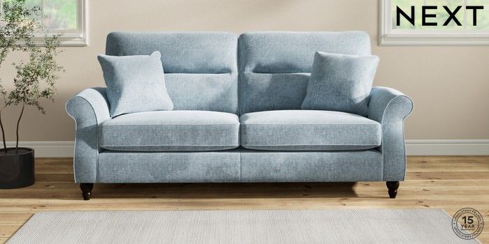 7.2.6 Buy Ashford Highback 3 Seater Sofa Plush Chenille Light Blue Low Turned - Dark from the Laura Ashley online shop Click here to use our website with more accessibility support, for example screen readers