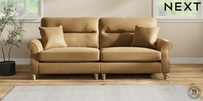 6.12.1 Buy Ashford Highback 4 Seater Sofa Luxe Chenille Honey Yellow Low Turned - Light from the Laura Ashley online shop Click here to use our website with more accessibility support, for example screen readers