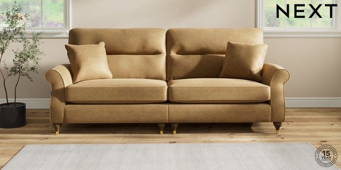 6.12.1 Buy Ashford Highback 4 Seater Sofa Luxe Chenille Honey Yellow Modern Turned Metal Cap - Mid from the Laura Ashley online shop Click here to use our website with more accessibility support, for example screen readers