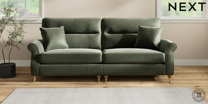 6.12.1 Buy Ashford Highback 4 Seater Sofa Luxe Chenille Mid Green Castor - Light from the Laura Ashley online shop Click here to use our website with more accessibility support, for example screen readers