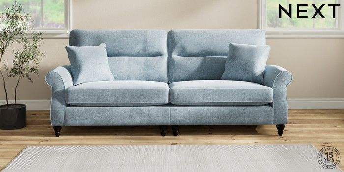 7.2.6 Buy Ashford Highback 4 Seater Sofa Plush Chenille Light Blue Low Turned - Dark from the Laura Ashley online shop Click here to use our website with more accessibility support, for example screen readers