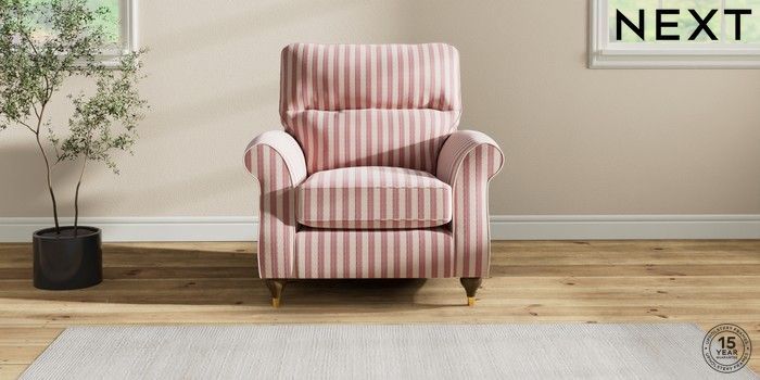 7.2.6 Buy Ashford Highback Armchair Bold Chenille Stripe Dark Pink Modern Turned Metal Cap - Mid from the Laura Ashley online shop Click here to use our website with more accessibility support, for example screen readers