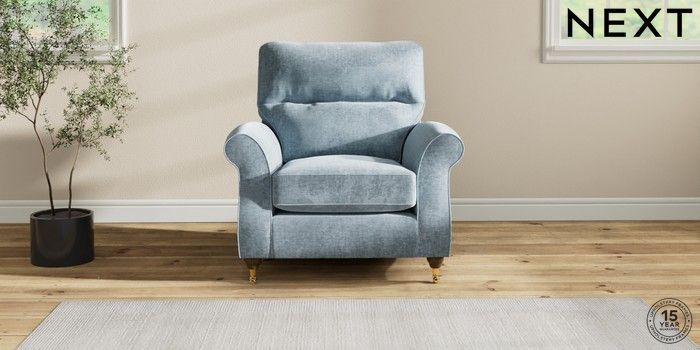 7.2.6 Buy Ashford Highback Armchair Plush Chenille Light Blue Castor - Mid from the Laura Ashley online shop Click here to use our website with more accessibility support, for example screen readers