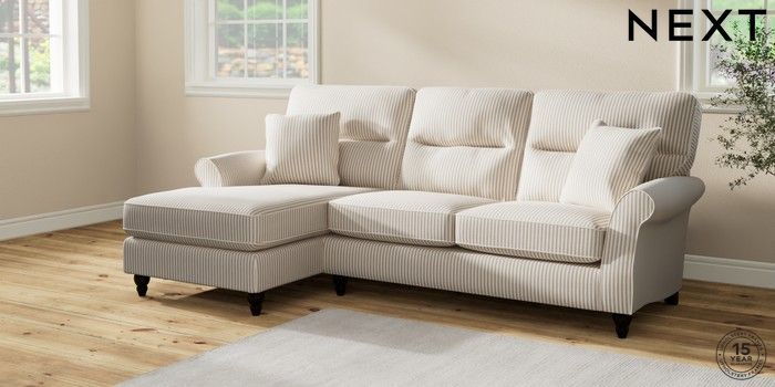 6.12.1 Buy Ashford Highback Medium Sofa Chaise - Left Hand Chenille Stripe Natural Low Turned - Dark from the Laura Ashley online shop Click here to use our website with more accessibility support, for example screen readers
