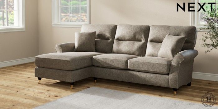 6.12.1 Buy Ashford Highback Medium Sofa Chaise - Left Hand Cotswold Chenille Mid Mink Brown Castor - Dark from the Laura Ashley online shop Click here to use our website with more accessibility support, for example screen readers