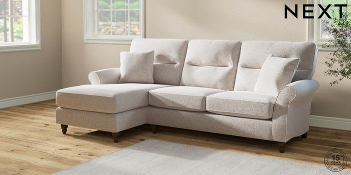 7.2.6 Buy Ashford Highback Medium Sofa Chaise - Left Hand Multi Weave Oyster Low Turned - Mid from the Laura Ashley online shop Click here to use our website with more accessibility support, for example screen readers
