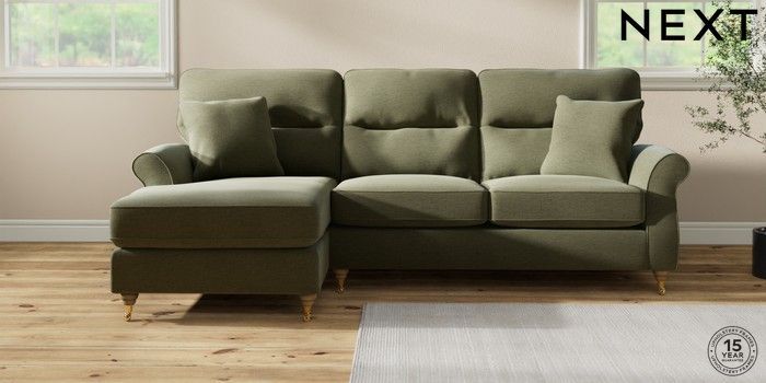 6.12.1 Buy Ashford Highback Medium Sofa Chaise - Left Hand Ripple Chenille Mid Moss Green Castor - Light from the Laura Ashley online shop Click here to use our website with more accessibility support, for example screen readers