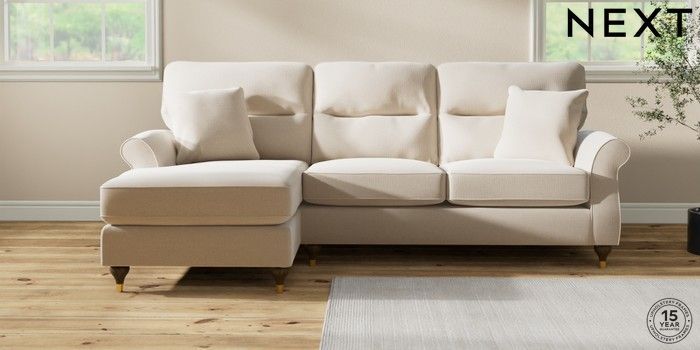 6.12.1 Buy Ashford Highback Medium Sofa Chaise - Left Hand Studio Chenille Oyster Modern Turned Metal Cap - Mid from the Laura Ashley online shop Click here to use our website with more accessibility support, for example screen readers