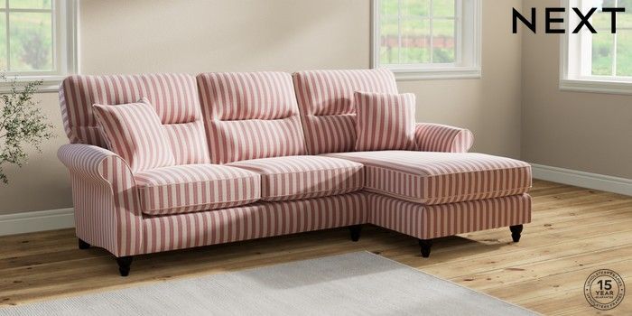 7.2.6 Buy Ashford Highback Medium Sofa Chaise - Right Hand Bold Chenille Stripe Dark Pink Low Turned - Dark from the Laura Ashley online shop Click here to use our website with more accessibility support, for example screen readers