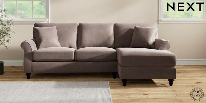 6.12.1 Buy Ashford Highback Medium Sofa Chaise - Right Hand Luxe Chenille Mink Brown Low Turned - Dark from the Laura Ashley online shop Click here to use our website with more accessibility support, for example screen readers