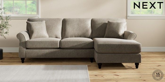 6.12.1 Buy Ashford Highback Medium Sofa Chaise - Right Hand Cotswold Chenille Mid Mink Brown Low Turned - Dark from the Laura Ashley online shop Click here to use our website with more accessibility support, for example screen readers