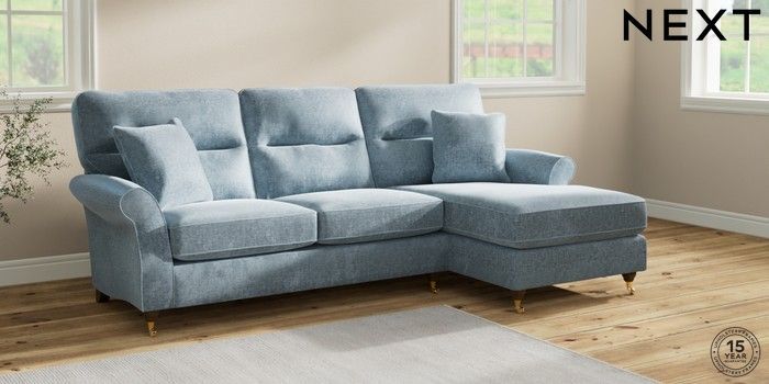 7.2.6 Buy Ashford Highback Medium Sofa Chaise - Right Hand Plush Chenille Light Blue Castor - Mid from the Laura Ashley online shop Click here to use our website with more accessibility support, for example screen readers