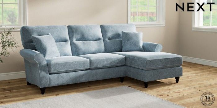 7.2.6 Buy Ashford Highback Medium Sofa Chaise - Right Hand Plush Chenille Light Blue Low Turned - Dark from the Laura Ashley online shop Click here to use our website with more accessibility support, for example screen readers