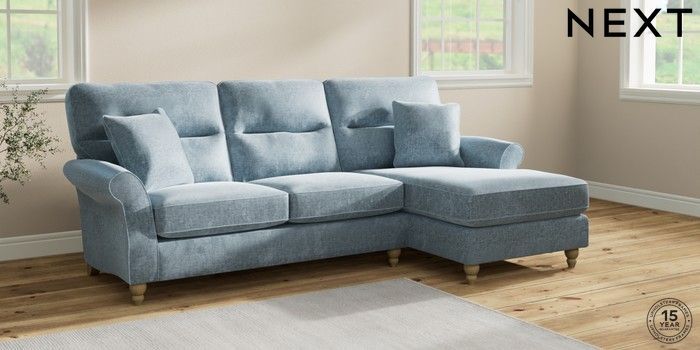 7.2.6 Buy Ashford Highback Medium Sofa Chaise - Right Hand Plush Chenille Light Blue Low Turned - Light from the Laura Ashley online shop Click here to use our website with more accessibility support, for example screen readers