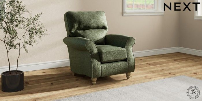 6.12.1 Buy Ashford Highback Small Armchair Boucle Chenille Dark Moss Green Low Turned - Light from the Laura Ashley online shop Click here to use our website with more accessibility support, for example screen readers