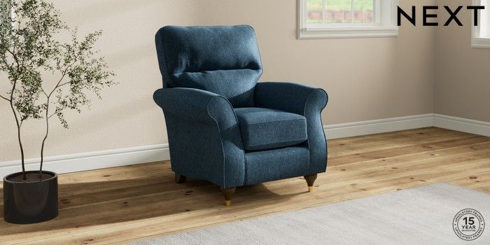 6.12.1 Buy Ashford Highback Small Armchair Cotswold Chenille Dark Blue Modern Turned Metal Cap - Mid from the Laura Ashley online shop Click here to use our website with more accessibility support, for example screen readers