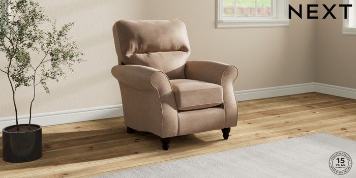 6.12.1 Buy Ashford Highback Small Armchair Luxe Chenille Mid Natural Low Turned - Dark from the Laura Ashley online shop Click here to use our website with more accessibility support, for example screen readers