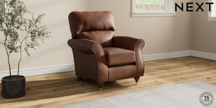 6.12.1 Buy Ashford Highback Small Armchair Monza Faux Leather Easy Clean Chestnut Brown Modern Turned Metal Cap - Mid from the Laura Ashley online shop Click here to use our website with more accessibility support, for example screen readers