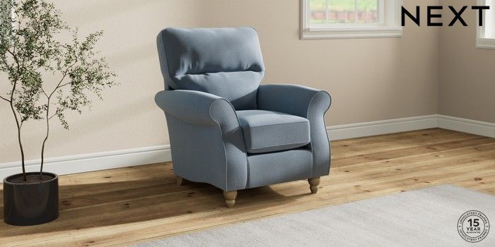 6.12.1 Buy Ashford Highback Small Armchair Relaxed Linen Look Mid Blue Low Turned - Light from the Laura Ashley online shop Click here to use our website with more accessibility support, for example screen readers