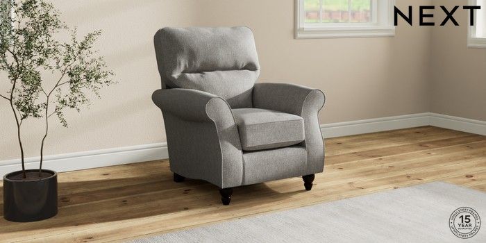 6.12.1 Buy Ashford Highback Small Armchair Tweedy Chenille Mid Grey Low Turned - Dark from the Laura Ashley online shop Click here to use our website with more accessibility support, for example screen readers