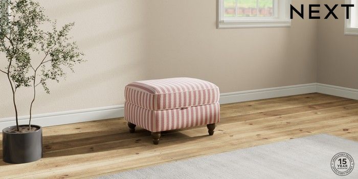 7.3.1 Buy Ashford Highback Storage Footstool Bold Chenille Stripe Dark Pink Low Turned - Mid from the Laura Ashley online shop