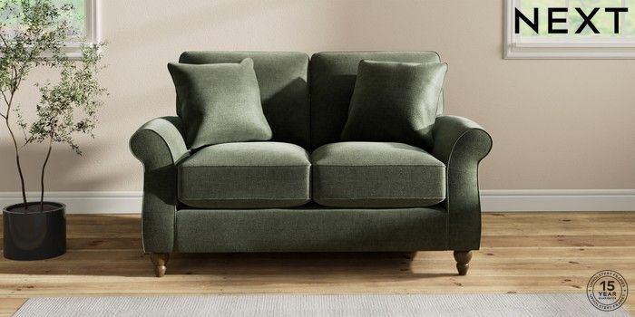 6.12.1 Buy Ashford Relaxed Sit 2 Seater Small Sofa Luxe Chenille Mid Green Low Turned - Mid from the Laura Ashley online shop Click here to use our website with more accessibility support, for example screen readers