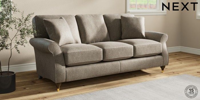 6.12.1 Buy Ashford Relaxed Sit 3 Cushion 3 Seater Sofa Cotswold Chenille Mid Mink Brown Modern Turned Metal Cap - Mid from the Laura Ashley online shop Click here to use our website with more accessibility support, for example screen readers