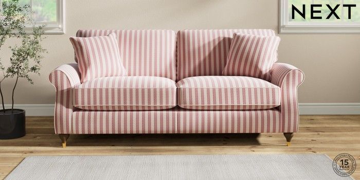 7.2.6 Buy Ashford Relaxed Sit 3 Seater Sofa Bold Chenille Stripe Dark Pink Modern Turned Metal Cap - Mid from the Laura Ashley online shop Click here to use our website with more accessibility support, for example screen readers