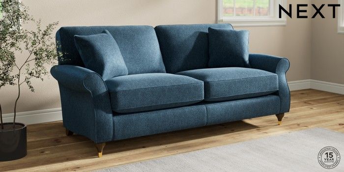 6.12.13 Buy Ashford Relaxed Sit 3 Seater Sofa Cotswold Chenille Dark Blue Modern Turned Metal Cap - Mid from the Laura Ashley online shop Click here to use our website with more accessibility support, for example screen readers