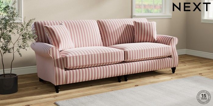 7.3.1 Buy Ashford Relaxed Sit 4 Seater Sofa Bold Chenille Stripe Dark Pink Low Turned - Dark from the Laura Ashley online shop