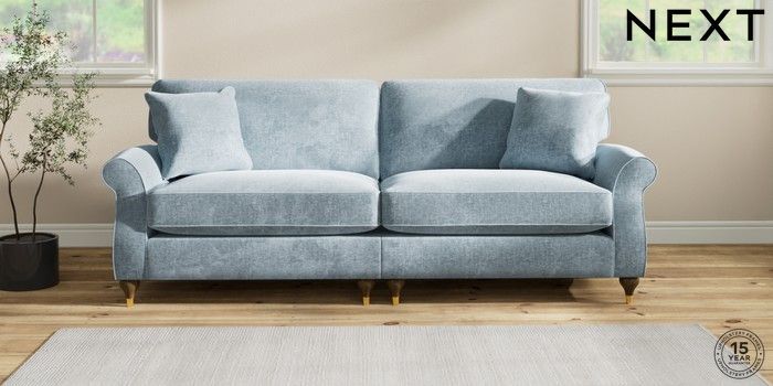 7.2.6 Buy Ashford Relaxed Sit 4 Seater Sofa Plush Chenille Light Blue Modern Turned Metal Cap - Mid from the Laura Ashley online shop Click here to use our website with more accessibility support, for example screen readers