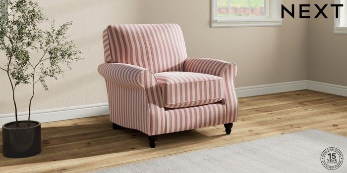 7.3.1 Buy Ashford Relaxed Sit Armchair Bold Chenille Stripe Dark Pink Low Turned - Dark from the Laura Ashley online shop