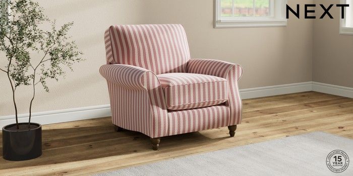 7.3.1 Buy Ashford Relaxed Sit Armchair Bold Chenille Stripe Dark Pink Low Turned - Mid from the Laura Ashley online shop