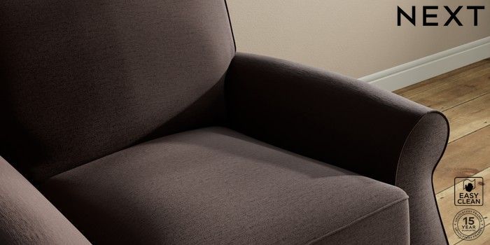 6.12.13 Buy Ashford Relaxed Sit Armchair Fine Chenille Easy Clean Chocolate Brown Modern Turned Metal Cap - Mid from the Laura Ashley online shop Click here to use our website with more accessibility support, for example screen readers