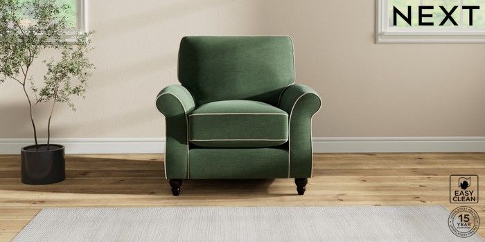 7.3.1 Buy Ashford Relaxed Sit Armchair Fine Chenille with Contrast Mid Khaki Green and Oyster Low Turned - Dark from the Laura Ashley online shop