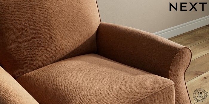 6.12.13 Buy Ashford Relaxed Sit Armchair Ripple Chenille Mid Rust Brown Modern Turned Metal Cap - Mid from the Laura Ashley online shop Click here to use our website with more accessibility support, for example screen readers