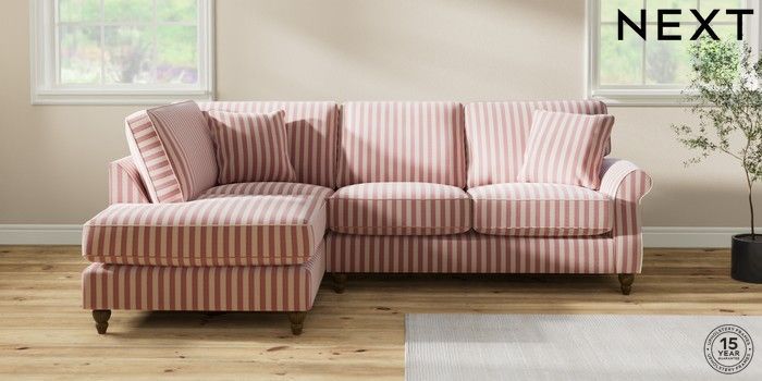 7.3.1 Buy Ashford Relaxed Sit Medium Corner Chaise - Left Hand Bold Chenille Stripe Dark Pink Low Turned - Mid from the Laura Ashley online shop