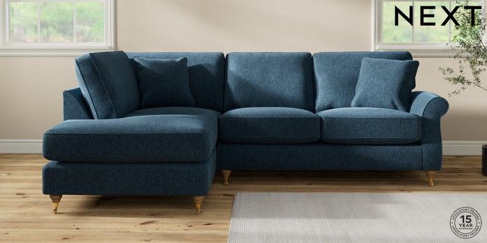 6.12.1 Buy Ashford Relaxed Sit Medium Corner Chaise - Left Hand Cotswold Chenille Dark Blue Castor - Light from the Laura Ashley online shop Click here to use our website with more accessibility support, for example screen readers