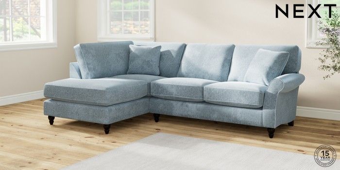 7.2.6 Buy Ashford Relaxed Sit Medium Corner Chaise - Left Hand Plush Chenille Light Blue Low Turned - Dark from the Laura Ashley online shop Click here to use our website with more accessibility support, for example screen readers