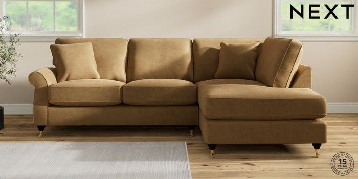 6.12.1 Buy Ashford Relaxed Sit Medium Corner Chaise - Right Hand Luxe Chenille Honey Yellow Castor - Dark from the Laura Ashley online shop Click here to use our website with more accessibility support, for example screen readers