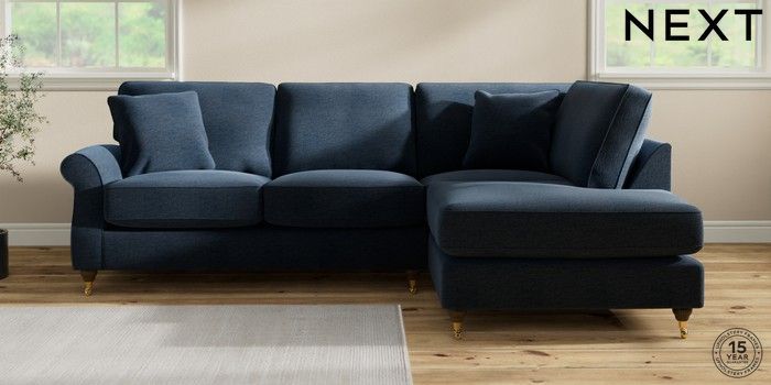 6.12.1 Buy Ashford Relaxed Sit Medium Corner Chaise - Right Hand Ripple Chenille Dark Blue Castor - Mid from the Laura Ashley online shop Click here to use our website with more accessibility support, for example screen readers