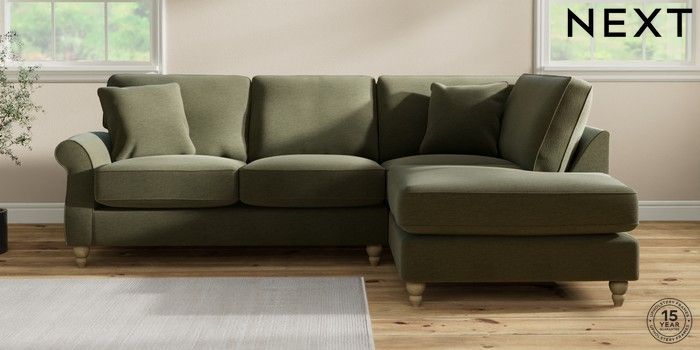 6.12.1 Buy Ashford Relaxed Sit Medium Corner Chaise - Right Hand Ripple Chenille Mid Moss Green Low Turned - Light from the Laura Ashley online shop Click here to use our website with more accessibility support, for example screen readers