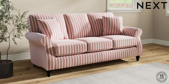 7.3.1 Buy Ashford 3 Cushion 3 Seater Sofa Bold Chenille Stripe Dark Pink Low Turned - Dark from the Laura Ashley online shop